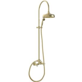 Lavabo Retro-serien er kendetegnet ved et klassisk skønt design og bløde svungne linjer. Leveres med 2-grebs blandingsbatteri, højde indstillelig brusestang, hovedbruser, håndbruser med holder samt bruseslange. Højde indstillelig mellem 930 - 1230 mm. Vægmonteringsbeslag kan indstilles mellem 60 - 85 mm. Hovedbruser diameter: Ø210 mm. Centerafstand: CC150 Der medfølger 2 stk rosetter. Fremstillet i massiv messing. Messing vil patinere smukt ved brug.Før pris: 7.190,00 kr. Inkl. moms -